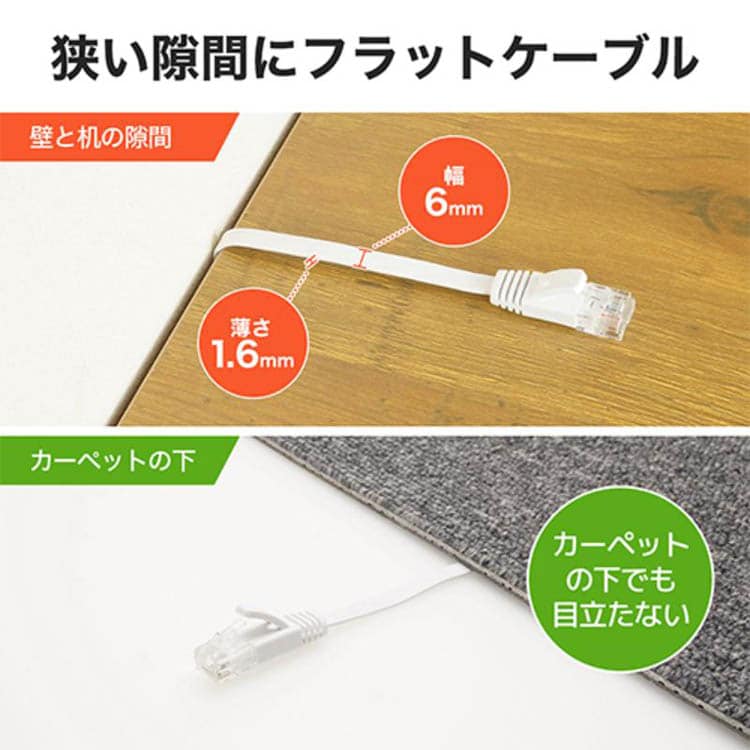 【LANケーブル カテゴリー6A対応 フラットタイプ 1m ホワイト LC10-035FWの商品詳細】