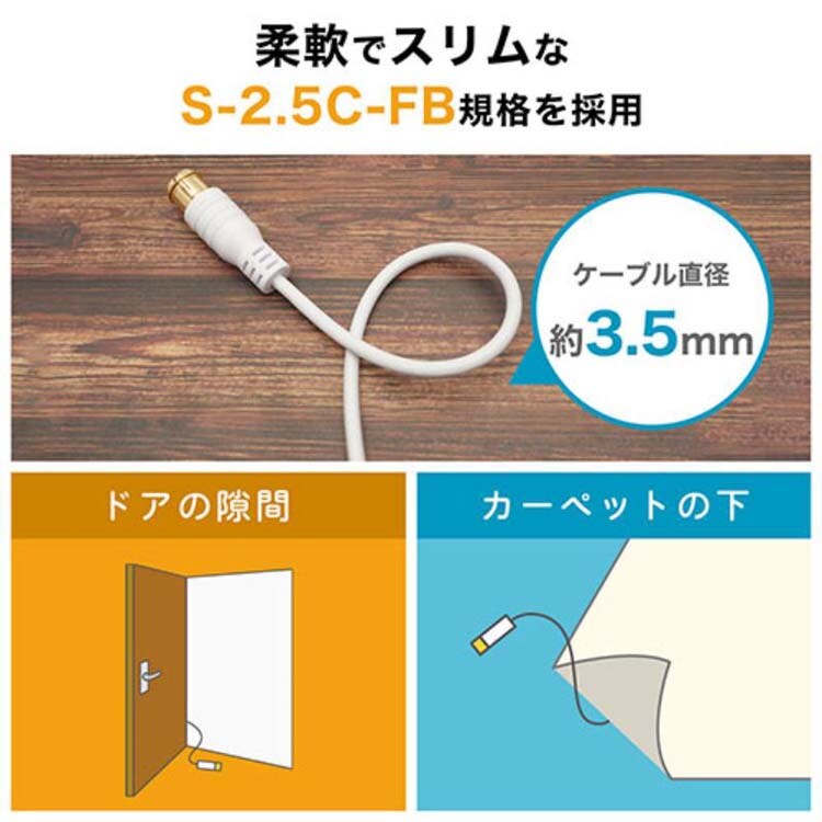 HORIC 極細アンテナケーブル 4K8K 差込式 2m ホワイト AC20-069WW (1個)のレビュー