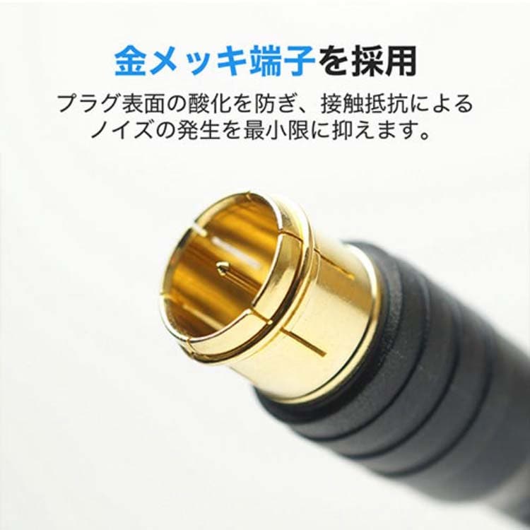 | ・ケーブル規格:S-2.5C-FB ・コネクタ規格:F型 ・コネクタ形状:差込式-差込式 ・コネクタサイズ:W約13.4 x H約13.4 x D約41.2 mm ・インピーダンス:75Ω ・ケーブル直径:約3.5mm ・ケーブル長:2m ・保証期間:1年間 ・生産国:中国 |