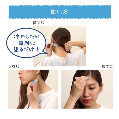 ・汗垂れの気になる首筋・うなじ等に適量塗り伸ばしてください。
