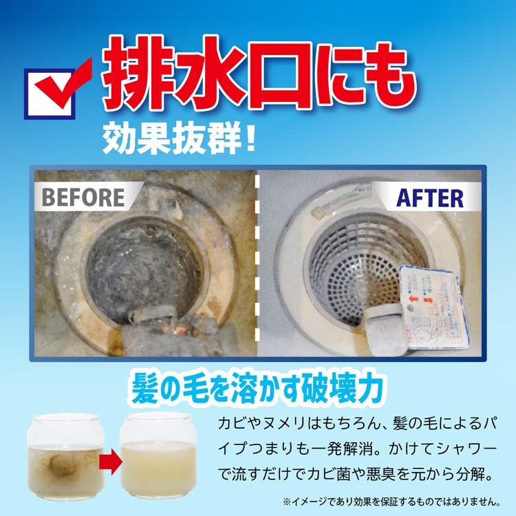 ●カビやヌメリはもちろん、髪の毛によるパイプつまりも。