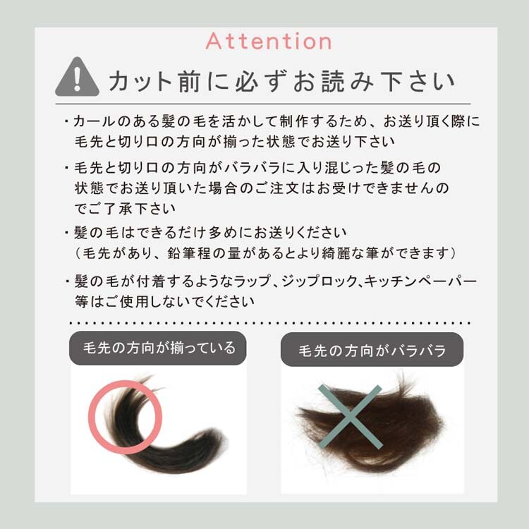 ・胎毛をカットされる前に必ず商品ページの「必要毛量」もしくはお届けする説明書をご確認ください。