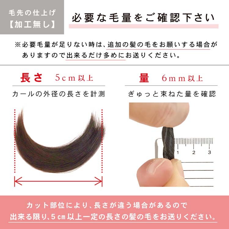 ・胎毛をカットされる前に必ず商品ページの「必要毛量」もしくはお届けする説明書をご確認ください。