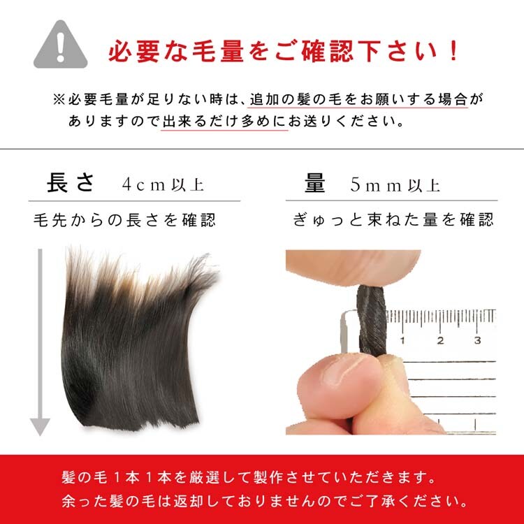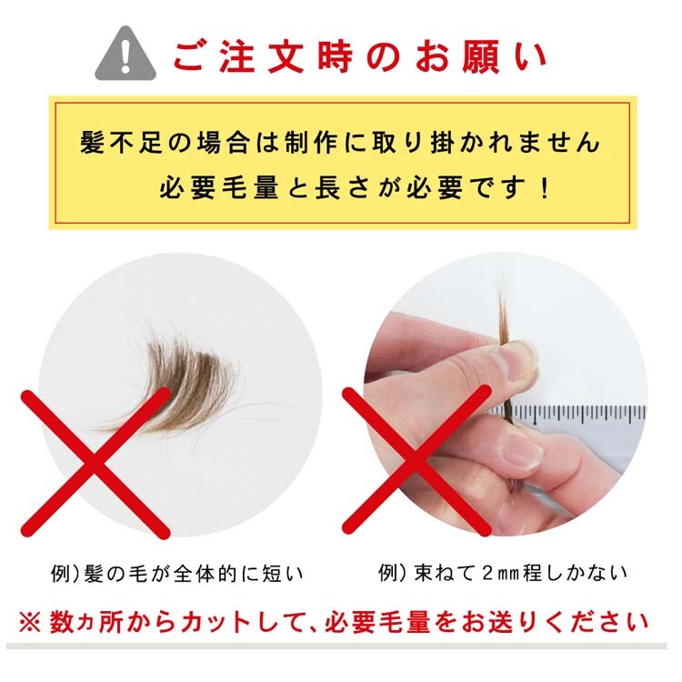 ・胎毛をカットされる前に必ず商品ページの「必要毛量」もしくはお届けする説明書をご確認ください。