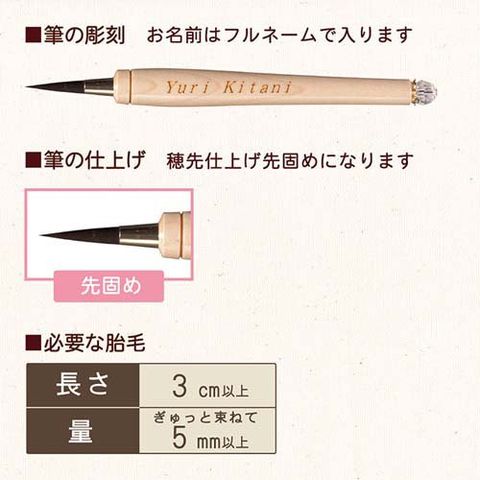 ・胎毛の量・長さによって、 お作りできる赤ちゃん筆の種類をお選びいただけます。