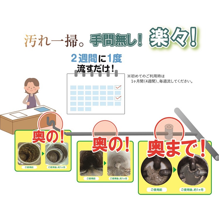 ・1週間に1度、1袋(500ml)を気になる水廻りから流してください。