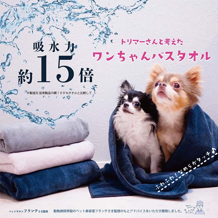 ●シャンプー後の拭き取りがあっという間に終わるので、シャンプーやドライヤーが苦手なワンちゃんにぴったりです。