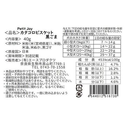 PetitJoy カタコロビスケット 黒ごま入り (40g)