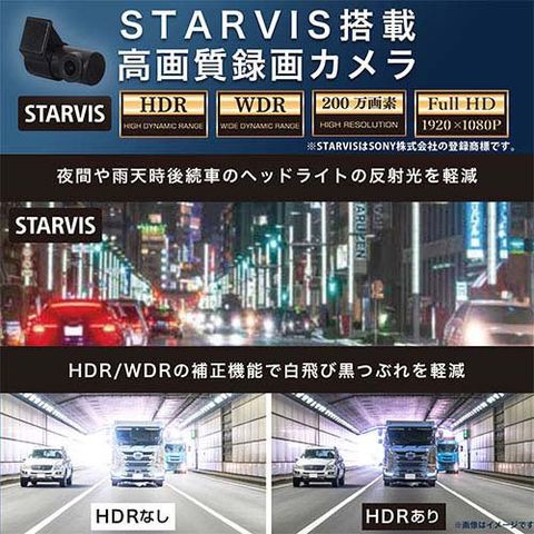 ●STARVIS、HDR、WDR搭載で暗いトンネルや昼夜問わず鮮明な画像を映し出す200万画素カメラにSTARVIS搭載。