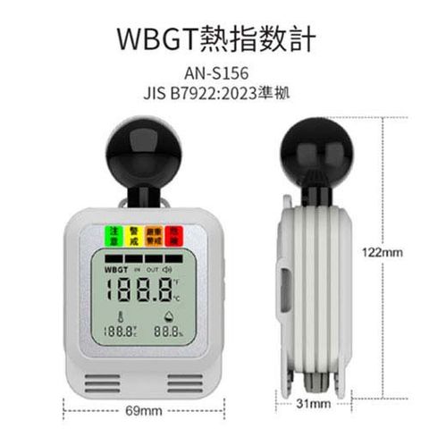 ●JIS B 7922:2023クラス2準拠品。精度区分、黒球温度、温度、湿度の3つの要素を測定し暑さ指数(WBGT)を算出します。