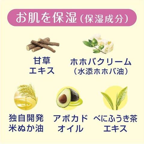 ●保湿成分として米ぬかオイル、ホホバクリーム、アボカドオイル、べにふうき茶エキス、甘草エキスを配合しました