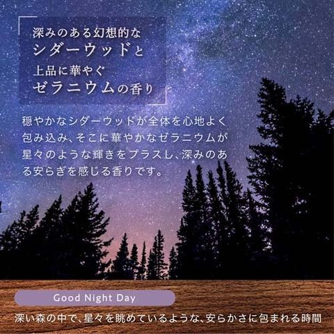 ●深みのある幻想的なシダーウッドと上品に華やぐゼラニウムの香り