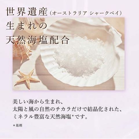 ●地球最古の生命体ストロマトライトが群生する、世界遺産のオーストラリアシャークベイで、太陽と風の力から生まれた天然海塩(基剤)。