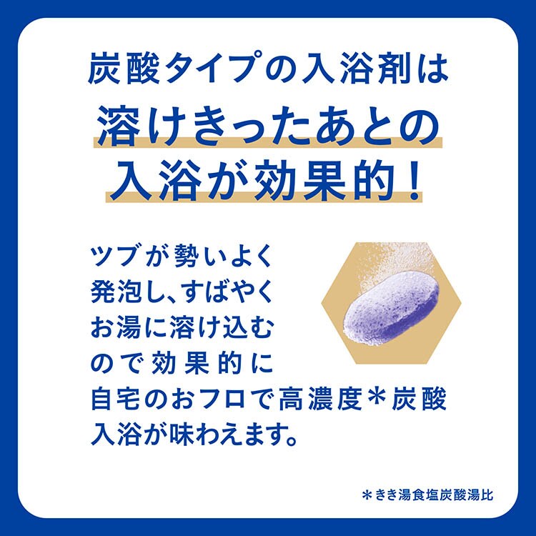 ●高濃度炭酸※2、生薬(ジンジャー)、温泉ミネラルのツブが、すばやく発泡、効率的に温浴効果を高め血行を促進、疲労感をリカバリーします。