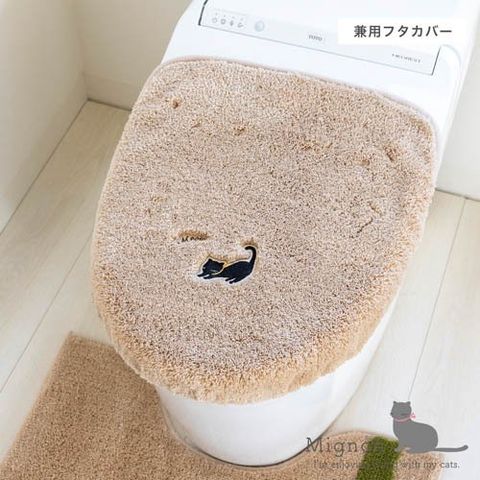 ●フタカバーはかわいいねこと「ミャウ」という鳴き声の刺繍が施されたワンポイントデザインで、「ミニョン」シリーズのアイテムと組み合わせて楽しいトイレ空間を演出できます。