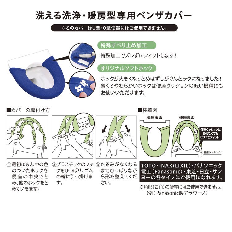 ●厚織りタイプでふんわりあたたかい、年中快適にご使用いただける「洗浄・暖房型専用便座カバー」です。