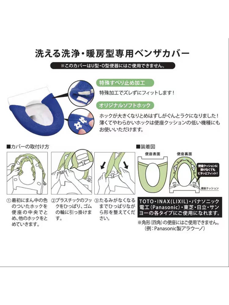 ●大きめホックで取り外しがらくらく。便座にも優しい。