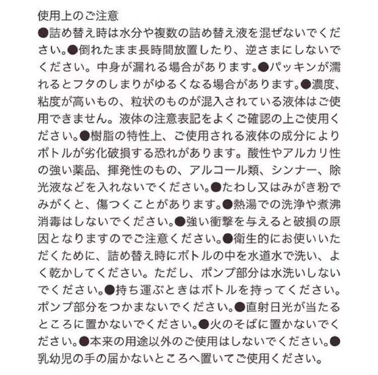 | サイズ:約8×8×16cm 素材:本体/ポリエチレンテレフタラート、フタ/ポリプロピレン、ポンプ/ポリプロピレン・ポリエチレン、パッキン/シリコン |