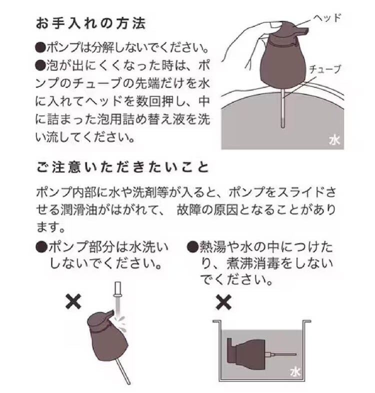 ●泡専用の詰め替えフォームを入れて、ふわふわクリーミーな泡ができます。