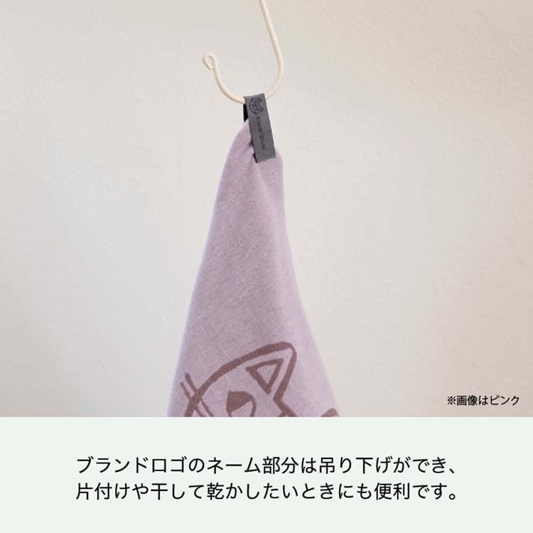 ●ブランドロゴのネーム部分は吊り下げができ、片付けや干して乾かしたいときにも便利です。