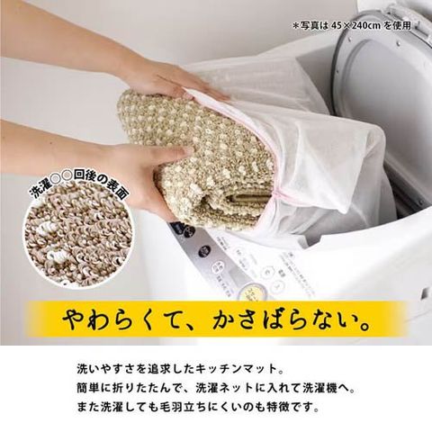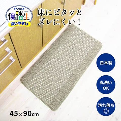 ●洗濯機で丸洗いできる日本製キッチンマット「優踏生(ゆうとうせい)洗いやすい」。