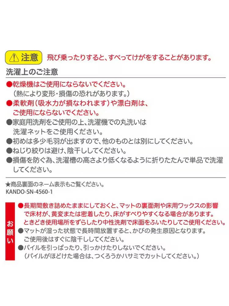 | サイズ:約縦45cm×横60cm×厚さ1.7cm 素材:アクリル100%(特殊吸水素材・抗菌防臭加工)、裏面滑り止め加工 |