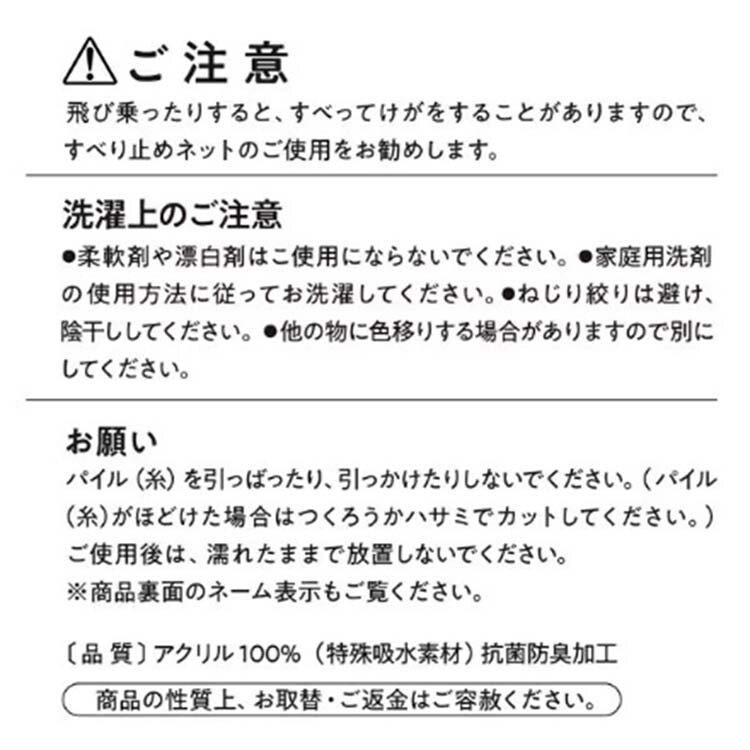| 本体サイズ:約縦35cm×横60cm 素材:アクリル100%(特殊吸水素材)、抗菌防臭加工 |