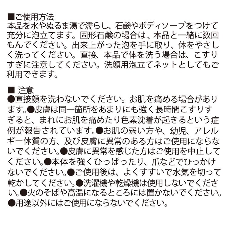 ●低密度ポリエチレンを100%使用したやわらかな泡立てボール。