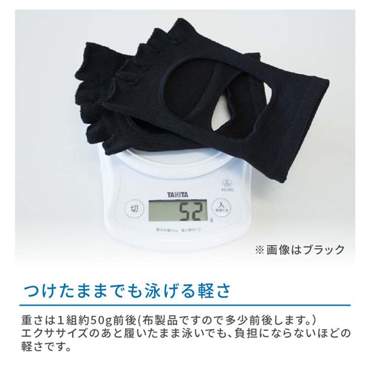 ●エクササイズのあと履いたまま泳いでも、負担にならないほどの軽さです。