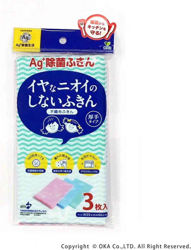 オカ イヤなニオイのしない不織布ふきん Ag+除菌 ピンク・ブルー・グリーン (3枚)