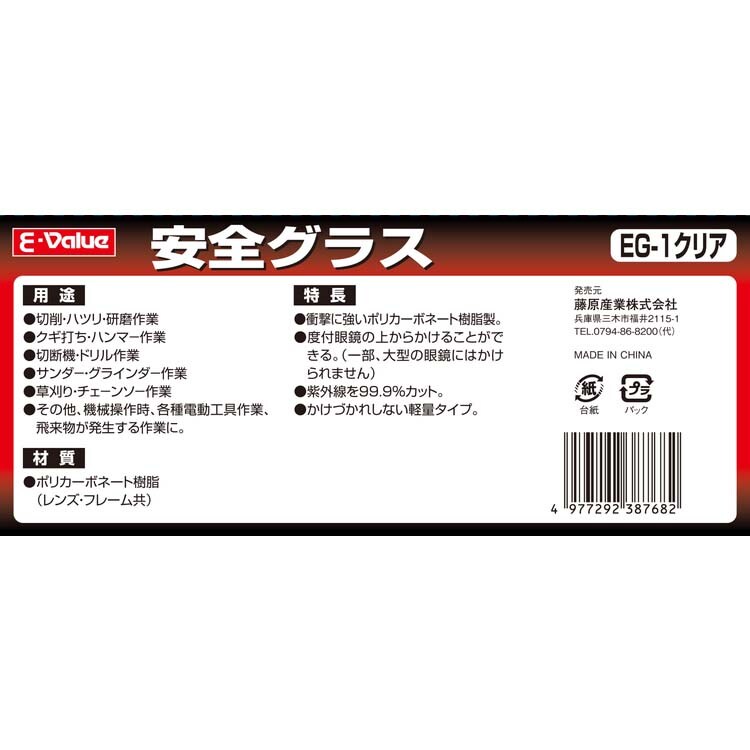 【藤原産業 E-Value 安全グラス クリア EG-1の商品詳細】