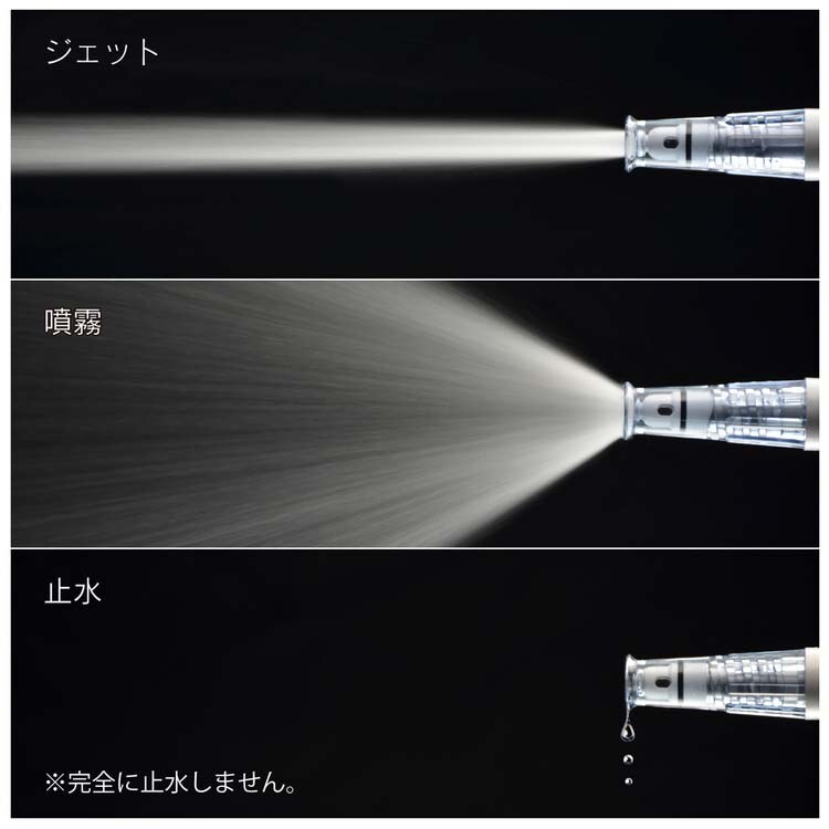 ●掃除ノズルジョイントセットは、噴霧とジェットの2種類の水流に切替ができ、一時止水もできます。