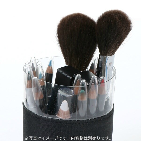 ●ブラシ・ペンシルなどを立てて収納できるので、場所も取らずに持ち運びにも便利。
