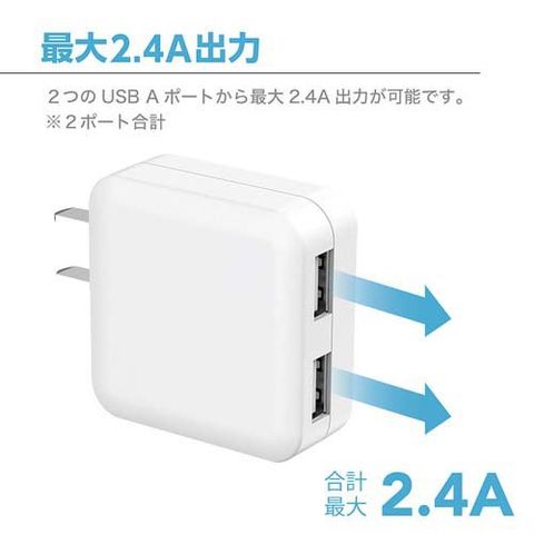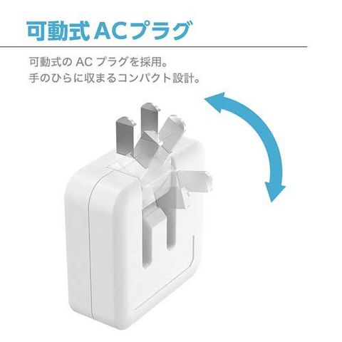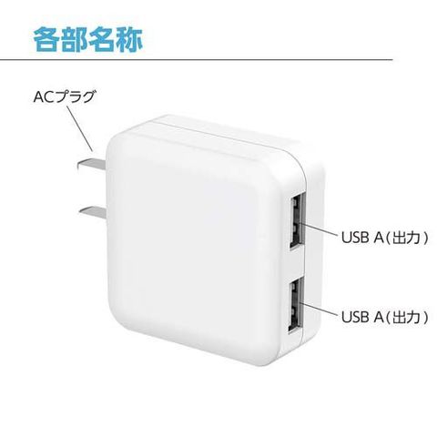 【AC充電器2.4AUSB-A×2折りたたみプラグ薄型ホワイトの商品詳細】