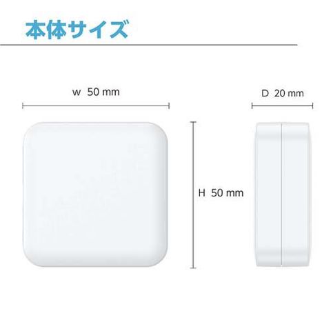 | 最大出力:2.4A最大/本体サイズ:約W50×H50×D20mm/本体重量:約45g |