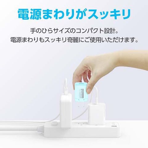 | 出力Type-C:5V3A 9V2.22A 12V1.67A(最大20W)/出力USB-A:5V3A 9V2A 12V1.5A(最大18W)/出力各ポート併用時:5V3A(最大15W)/本体サイズ:約W31×H32×D39mm/本体重量:約40g |