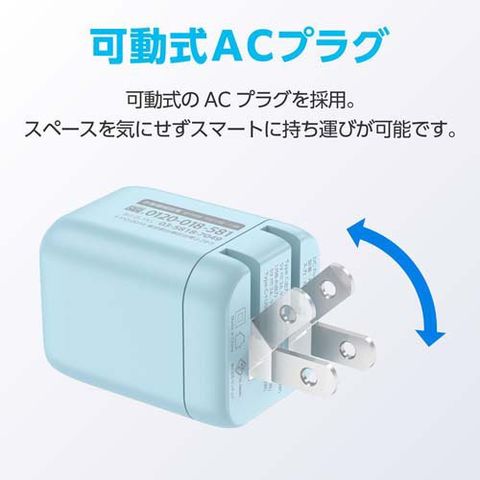 PD20W対応 AC充電器 USB-C×1USB-A×1 コンパクト アリスブルー (1個)