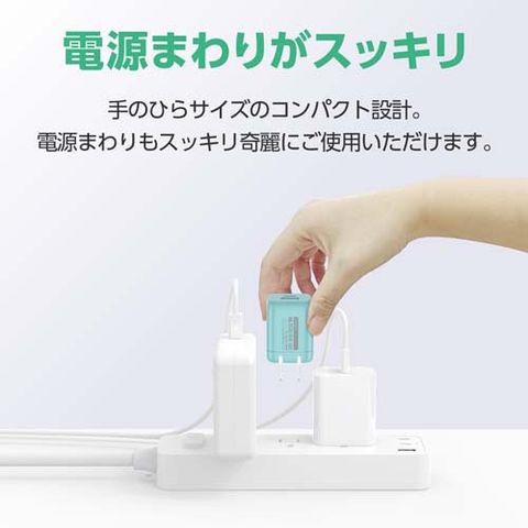 | 出力Type-C:5V3A 9V2.22A 12V1.67A(最大20W)/出力USB-A:5V3A 9V2A 12V1.5A(最大18W)/出力各ポート併用時:5V3A(最大15W)/本体サイズ:約W31×H32×D39mm/本体重量:約40g |