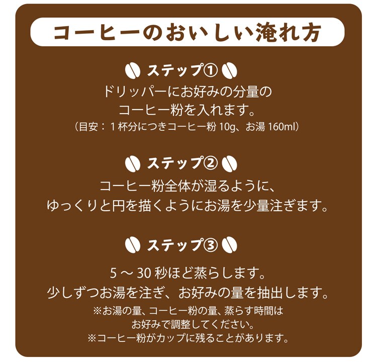 (目安:1杯分につきコーヒー粉10g、お湯160ml)