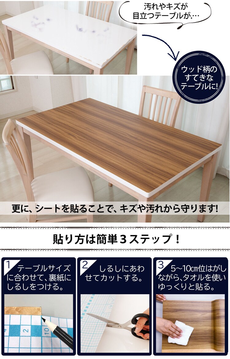 ●更に、貼ることで汚れやキズからテーブルを守ります!