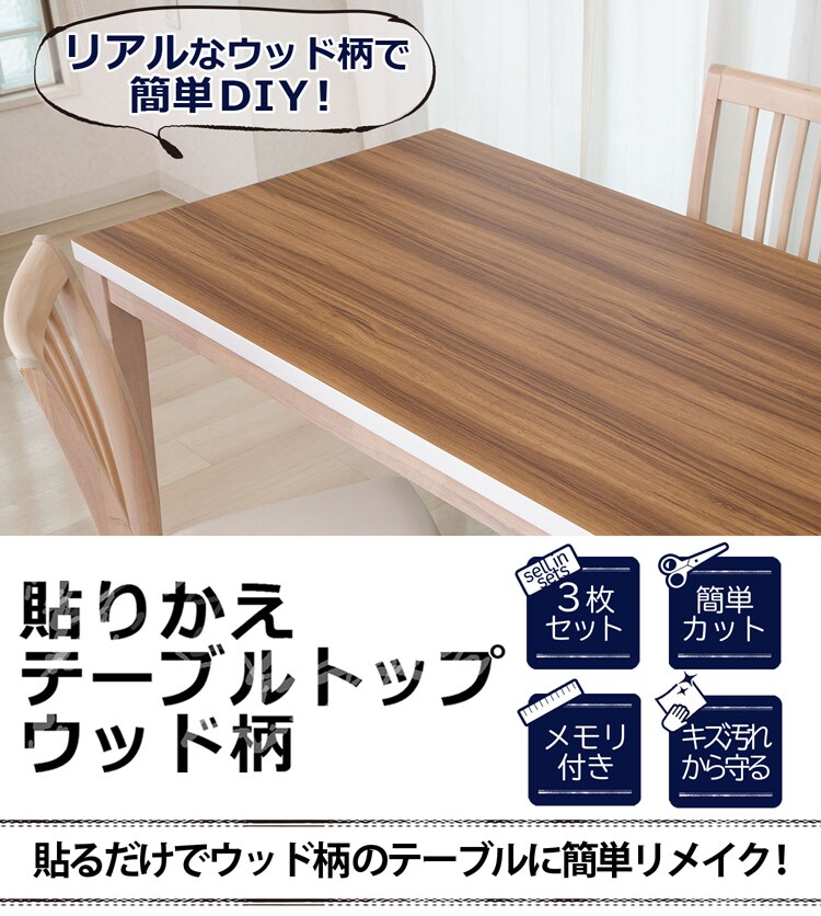 貼りかえテーブルトップ ウッド柄 (3枚入)