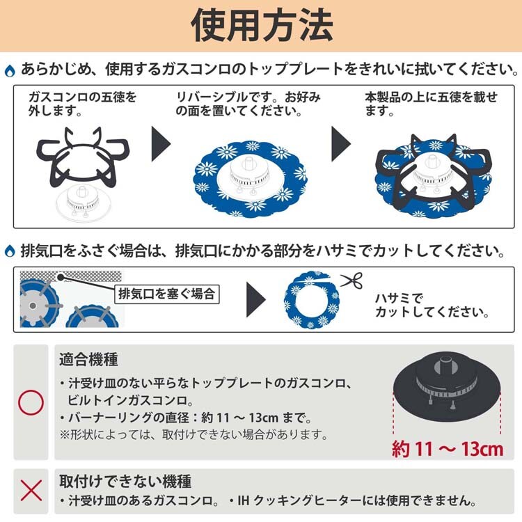 ●吹きこぼれや油はねによるガスコンロの汚れを手軽に防ぎ、汚れてもサッと洗うだけでお手入れ簡単。