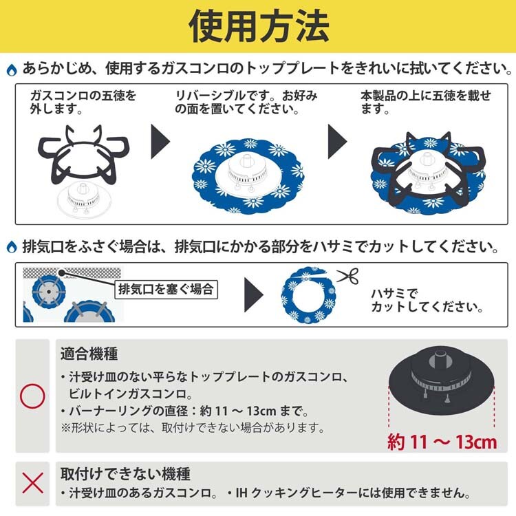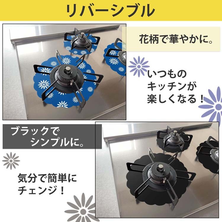 ●吹きこぼれや油はねによるガスコンロの汚れを手軽に防ぎ、汚れてもサッと洗うだけでお手入れ簡単。
