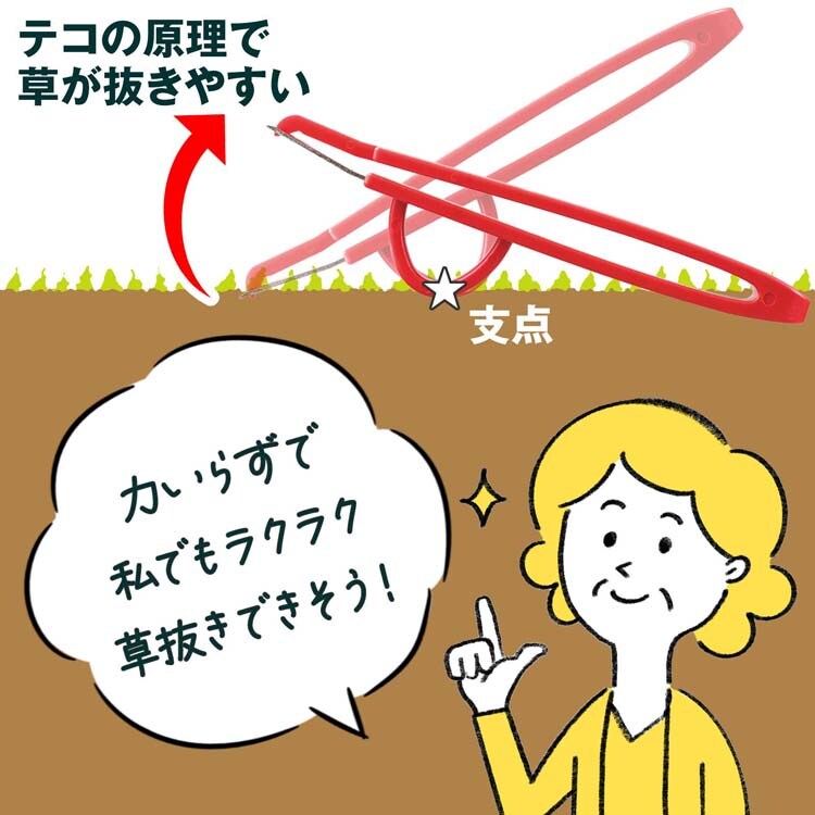●トング形状で挟みこみ、雑草を根元から引き抜きます。