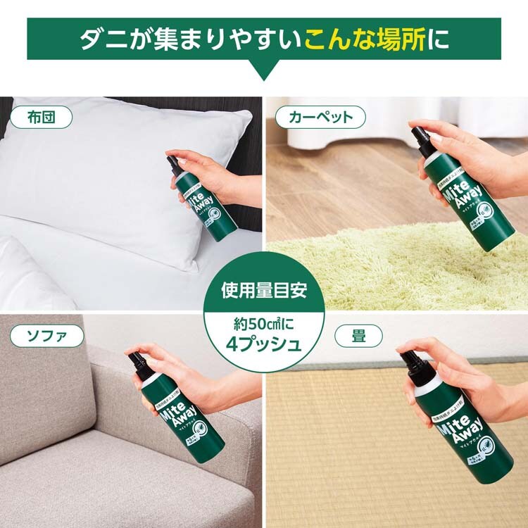 ●ダニが繁殖しやすい布団やカーペット、畳などにスプレーするだけ!
