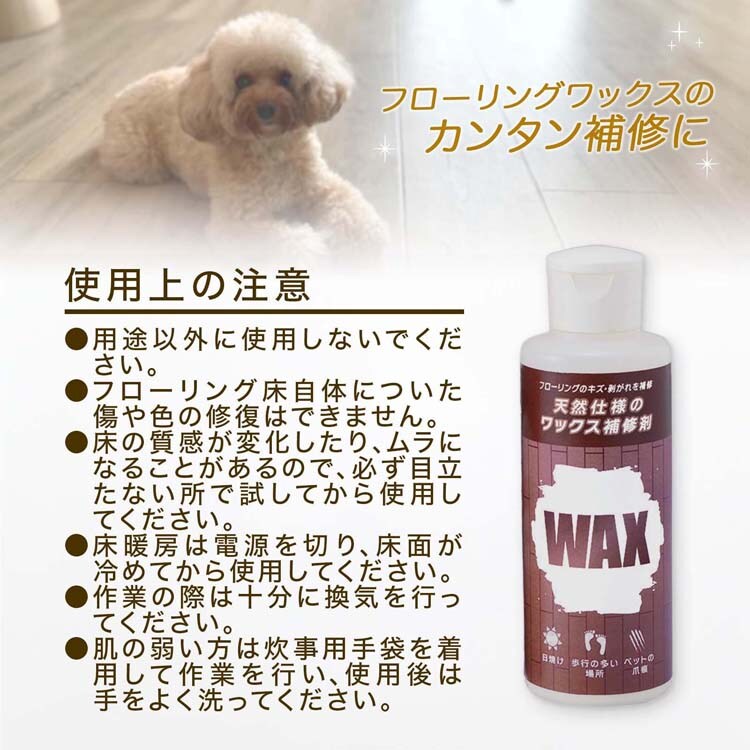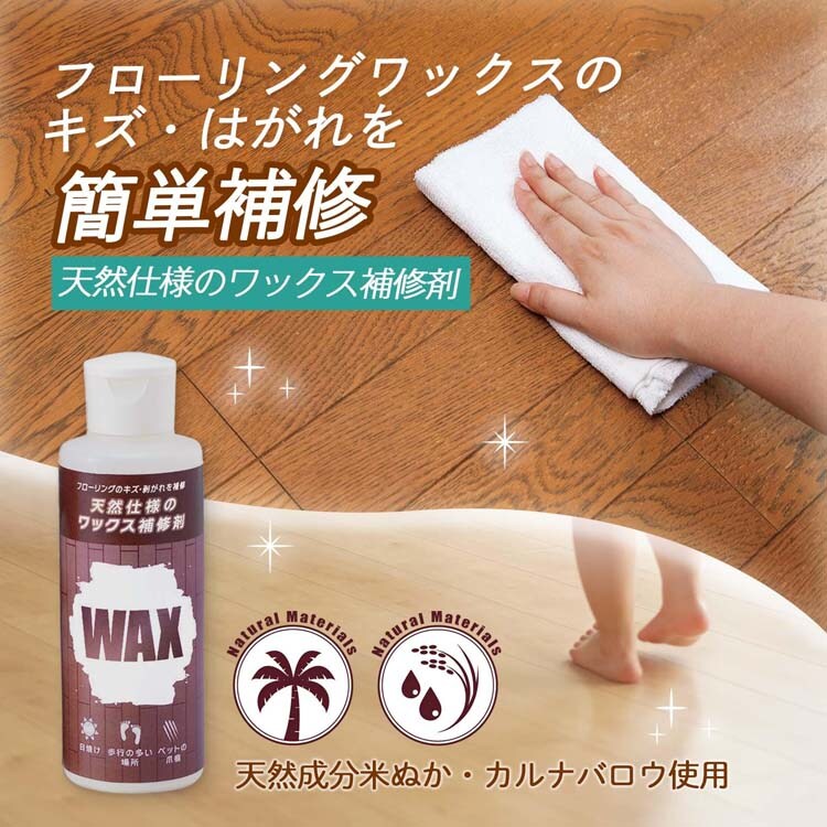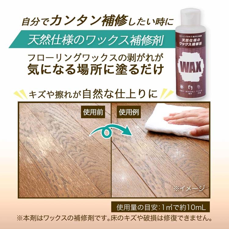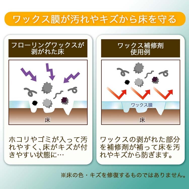 ●フローリングワックスが剥がれたり、薄くなった部分を天然由来ワックス成分で簡単補修。