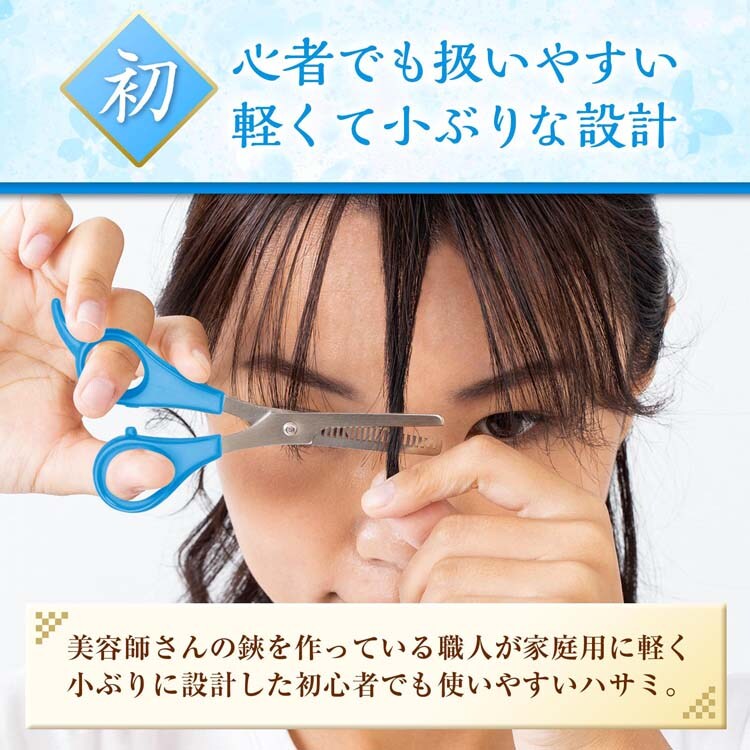 ●関市の職人が作った本物の切れ味で、美容師さんの鋏を作っている職人が家庭用に軽く小ぶりに設計した初心者でも使いやすいハサミです。