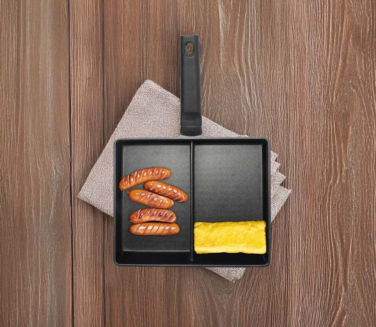 ●同時調理ができる仕切り付きフライパン。