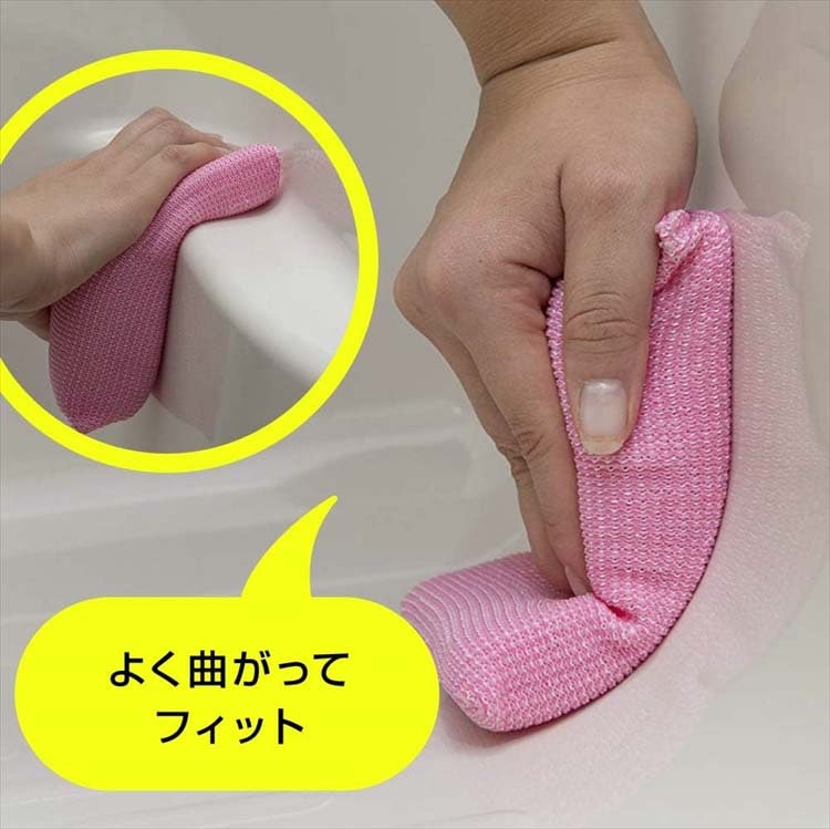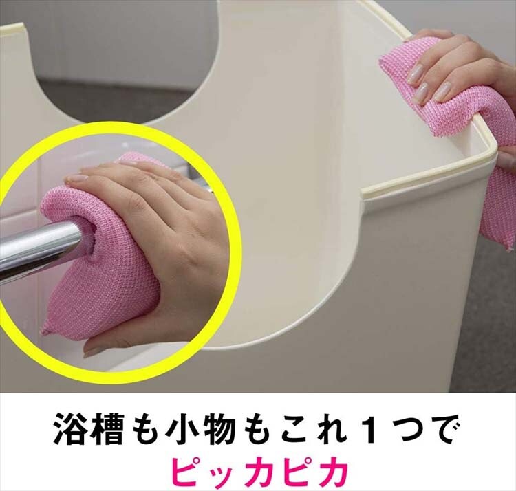 ●ハイブリッド構造で、マイクロファイバーが湯アカ、ヌメリを落とし、フィルムが石けんカス汚れをかきとります。