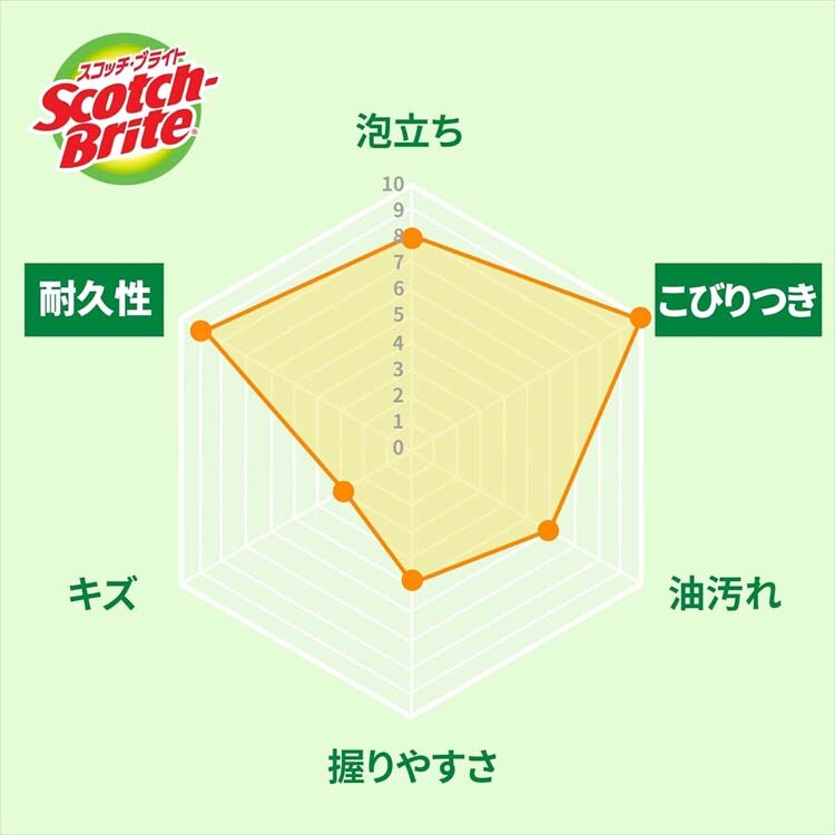 | ・使用温度:90度以下 ・素材:ポリエステル不織布(研磨粒子つき)、抗菌ウレタンスポンジ(無機系抗菌剤使用) |